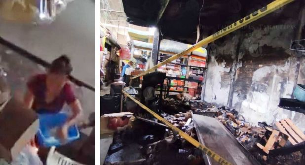 Una mujer incendia dos negocios del mercado de Tampico, y ya es buscada por las autoridades.
