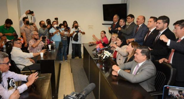 En conferencia de prensa la diputada Úrsula Salazar Mojica, dio lectura a un documento en el que a nombre de todos los legisladores de Morena en el Congreso de Tamaulipas aseguraron que seguirán dando la lucha contra la tiranía que pronto llegará a su fin.