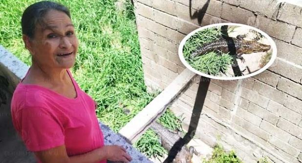 La tamaulipeca afirma que ya tiene 10 años como mascota a "Coco" y está domesticado. Cada vez que le habla, el caimán sale de la laguna a través de un canal para comer en la parte baja del domicilio familiar.