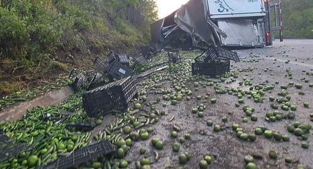 Según las primeras investigaciones, el exceso de velocidad al intentar tomar la curva, provocó que el camionero perdiera el control de la unidad y chocara contra una de las paredes de la sierra y posteriormente volcara sobre su costado izquierdo derramándose la carga sobre el pavimento del camino.