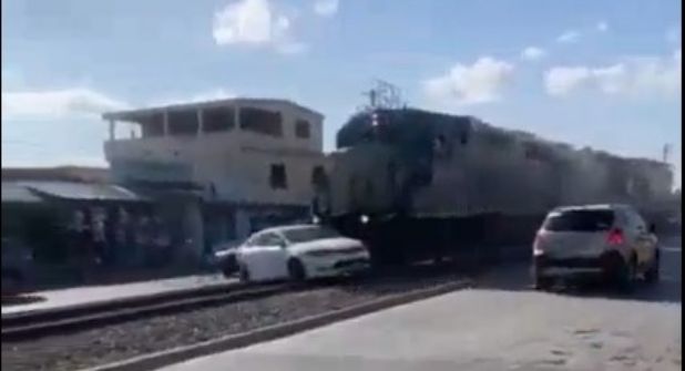 En el video se observa como el tren avanza con el auto frente a él. Debido a la potencia del poderoso ferrocarril, le es imposible frenar de inmediato, lo que ocasiona que arrastre el auto, el cual no fue destrozado.