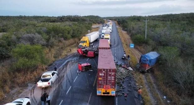 Los hechos se registraron en el Kilómetro 91 de la Victoria-Monterrey, en el ejido Marroquín, en el municipio de Hidalgo, Tamaulipas y debido al percance se registraron kilométricas filas de tráileres en ambos sentidos.
