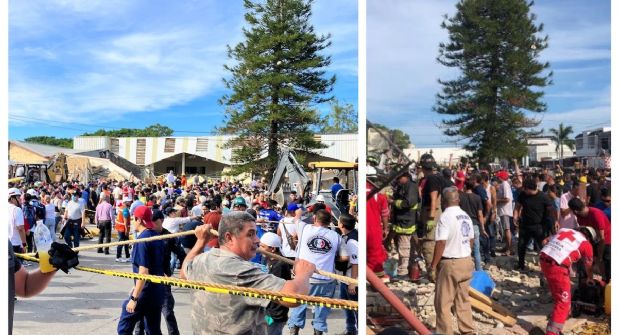 Una cámara de seguridad de una vivienda cercana a la iglesia, captó el momento en que se desploma la parte superior de la iglesia, cayendo sobre los asistentes, algunos lograron salir, pero la gran mayoría quedaron atrapados.