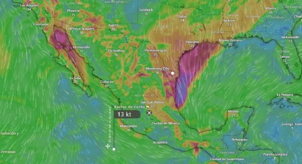 Además, causaría evento de "Norte" intenso en la entidad, con rachas de 100 a 120 km/h, oleaje de 3 a 5 metros de altura y posible formación de trombas marinas en costas de Tamaulipas, según señala el SMN.