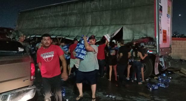 Primero, autoridades como Protección Civil resguardaban la mercancía, pero momentos después se dijo que la empresa se haría cargo... y se hizo la rapiña.