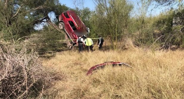 Muere una pareja tras volcar en la Carretera Ribereña, el fatal accidente se registró en el Kilómetro 19, a altura del poblado Arguelles en Reynosa, Tamaulipas.