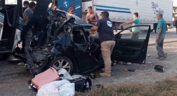 La tarde de este martes, en la Carretera Matamoros-Victoria, una mujer perdió la vida al quedar prensada en un vehículo compacto, tras choque contra un autobús de la línea Transpaís. Nueve personas resultaron lesionadas.