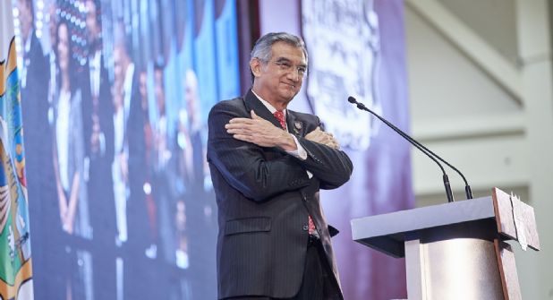 Aseveró que tras recibir de Francisco García Cabeza de Vaca una administración pública colapsada, orientada al latrocinio y al saqueo de los recursos públicos, el gobierno de la transformación ha reorganizado a fondo la estructura gubernamental y hoy Tamaulipas es una entidad que puede ver hacia el futuro con mayor certidumbre y en donde con voluntad y trabajo, el humanismo se hace realidad.
