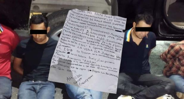 El ‘Grupo Escorpión’ o ‘Escorpiones’, una de las facciones del CDG, dejó una cartulina con un narcomensaje en el que asegura que “decidió entregar a los involucrados y responsables en los hechos, quienes en todo momento actuaron bajo su propia determinación e indisciplina”.