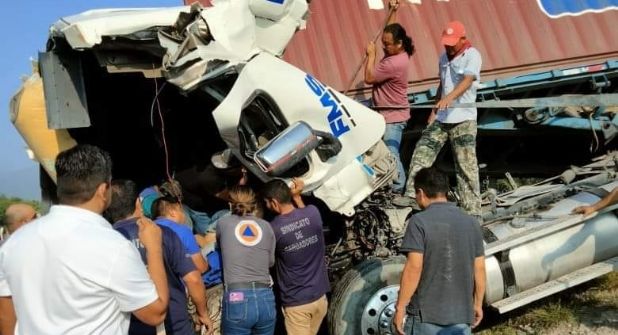 Cuando se dio el choque, el primer contenedor del tráiler aplastó su propia cabina, motivo por el que el chofer quedó entre los fierros.