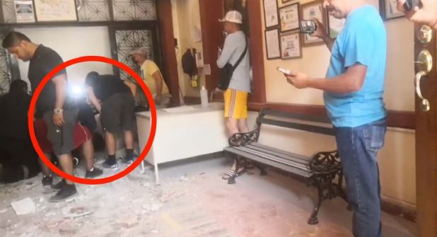 Algunos trabajadores de la institución y otras personas llegaron ante el derrumbe de la entrada, donde con lámparas intentaron traspasar, pero no se pudo ante los pedazos de concreto, los rescatistas escucharon voces por lo que estuvieron comunicándose con lo que serían personas atrapadas sin calcular un número.