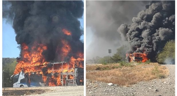 Completamente consumido quedó un autobús de dos pisos, el accidente se registró en el kilómetro 206 de la carretera federal Ciudad Victoria - Llera de Canales, a la altura del ejido El Ebano.