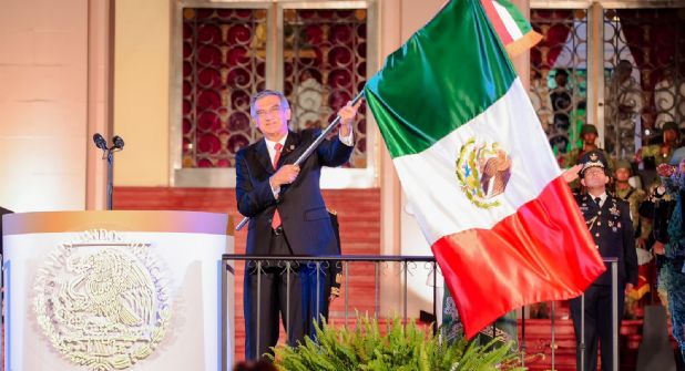 El gobernador tamaulipeco, tañó la campana, emulando el llamado a las armas, realizado en 1810 por el Cura Miguel Hidalgo y Costilla y ondeó la enseña nacional, entonando todos los presentes el himno nacional mexicano.