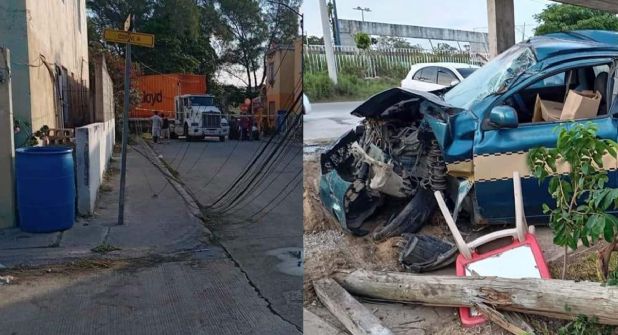 Un tráiler chocó contra árboles, autos y postes, el tractocamión causó destrozos sin que nadie pudiera detenerlo, ya que el transporte pesado logró darse a la fuga, estos hechos ocurrieron durante la mañana de este sábado 16 de septiembre.