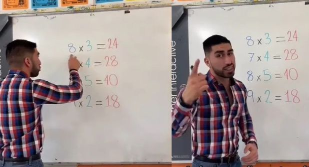 En un video muestra el corrido 'El 24' de la Banda MS modificado para enseñar las tablas de multiplicar. Mismo que dice "Ocho por tres 24, siete por cuatro 28, ocho por cinco 40” con la característica tonada de un corrido.