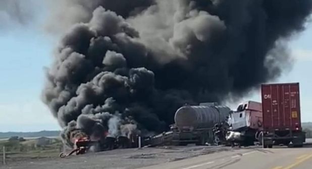 El incendio y choque de una pipa con un tráiler en el kilómetro 22 de la Carretera Federal 81, sobre el tramo carretero González-Xicoténcatl, dejó a una persona muerta y que la circulación en ambos sentidos fuera cerrada.