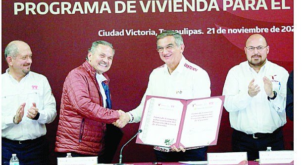A poco más de un mes de haber iniciado el gobierno de la presidenta Claudia Sheinbaum, en Tamaulipas ya se aterrizan los programas para el desarrollo y bienestar social, aseguró el gobernador Américo Villarreal Anaya, al firmar con el director general del Instituto del Fondo Nacional de la Vivienda para los Trabajadores (Infonavit), Octavio Romero Oropeza, el convenio de colaboración que permitirá la construcción de 43 mil viviendas en 29 municipios del Estado y el otorgamiento de 55 mil créditos.