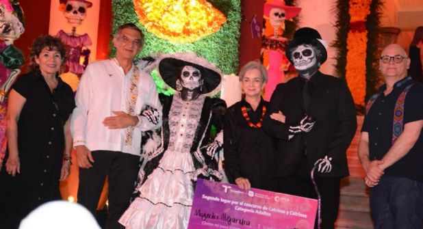 El gobernador Américo Villarreal Anaya y la presidenta del DIF Estatal, María de Villarreal, premiaron a las y los ganadores del concurso de “Catrinas y Catrines Tradición y Color” y recorrieron junto con las familias victorenses el altar monumental instalado en Palacio de Gobierno como parte de las festividades del Día de Muertos.