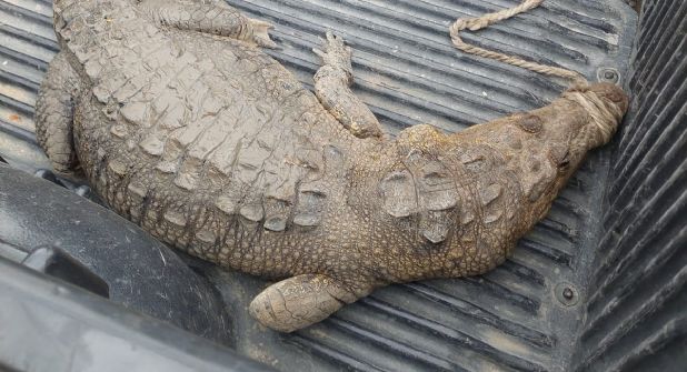 El cocodrilo de casi dos metros fue capturado por los trabajadores, aunque no se sabe cómo, informó Irving Montes Rosales, presidente de la comisión de Protección Civil en el cabildo de Altamira.