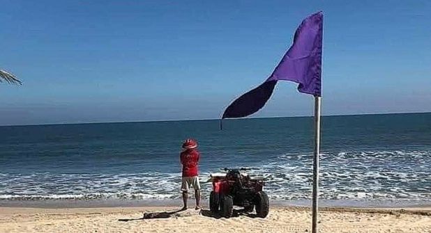 Sabemos que hay banderas de diferentes colores: verde para áreas seguras, amarilla para precaución, roja para alto riesgo y negra para playas cerradas. La bandera morada indicará la presencia de fauna nociva