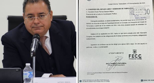 Raúl Ramírez Castañeda, titular de la Fiscalía anticorrupción de Tamaulipas, presentó su renuncia por escrito al Congreso estatal.