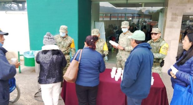 El personal militar acudió al Hospital del IMSS y al Hospital Civil de Ciudad Victoria, donde distribuyó café caliente y pan a pacientes, familiares y personal médico, beneficiando a un total de 210 personas.