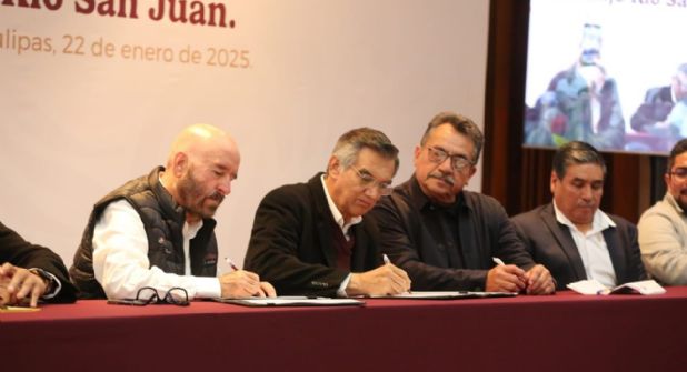 Como parte del Plan Nacional Hídrico que impulsa la presidenta Claudia Sheinbaum, el gobernador Américo Villarreal Anaya firmó un convenio de colaboración entre la Comisión Nacional del Agua (CONAGUA), el Estado a través de la Secretaría de Recursos Hidráulicos de Tamaulipas, la Secretaría de Agricultura y Desarrollo Rural y los usuarios del Distrito de Riego 026 Bajo Río San Juan, que permitirá tecnificar 200 kilómetros de canales en el fronterizo Distrito de Riego con una inversión de más de 4,100 millones de pesos.