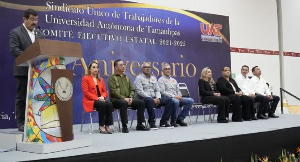 En su mensaje, destacó que, a más de cinco décadas, esta organización sindical ha sido parte esencial del crecimiento, la estabilidad y la fortaleza de la Universidad, subrayando que este encuentro no solo es una celebración, sino un reconocimiento al esfuerzo constante que hace posible que la UAT siga siendo un orgullo para todo el estado de Tamaulipas.