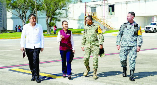 Acompañada por el General de División Juan José Gómez Ruiz, comandante de la IV Región Militar, y por el coordinador estatal de la Guardia Nacional, Jesús Adolfo Amparán Hernández, la Presidenta destacó el trabajo conjunto entre los tres órdenes de gobierno en tareas de prevención y seguridad en la región.