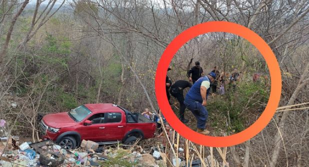 De acuerdo con los informes preliminares, una camioneta tipo pickup se deslizó por un acantilado de aproximadamente mas de cinco metros de profundidad, atrapando a los cuatro ocupantes, quienes eran personas de la tercera edad.