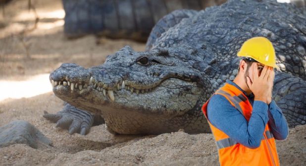 Obreros de una construcción casi "se mueren" del susto, luego de toparse con un enorme cocodrilo de más de dos metros de altura, motivo por el cual tuvieron que llamar a Protección Civil para que acudiera al lugar.