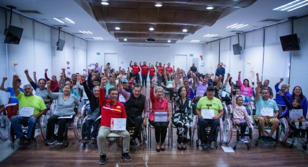 Ciudad Victoria, Tamaulipas.– Con la presentación de una novedosa silla de ruedas bipedestadora, el Sistema DIF Tamaulipas, que preside la doctora María de Villarreal y, la asociación Vida Independiente, se llevó a cabo la clausura del Curso para la Vida Independiente en el que participaron beneficiarios de sillas de ruedas y alumnos del Centro de Rehabilitación y Educación Especial (CREE).