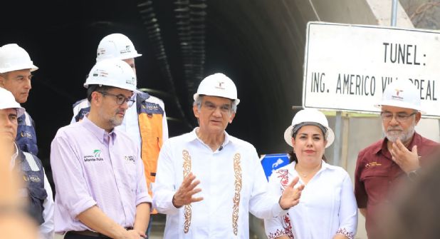 Al continuar el recorrido ya en el túnel que lleva el nombre del exgobernador Américo Villarreal Guerra, la explicación estuvo a cargo del ingeniero José Luis Amozoqueña, quien dio a conocer que el revestimiento definitivo del interior de la obra registra un avance del 70 por ciento. El director de la construcción del túnel agregó que hay 400 trabajadores para concluir en el tiempo previsto y detalló que, a la fecha, no se ha registrado ningún accidente fatal, a pesar de la magnitud que ha implicado la construcción de uno de los túneles más largos del país.
