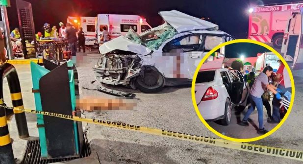 Los primeros informes indicaron que el conductor del auto Versa hizo una mala maniobra en un retorno y fue chocado por el tráiler, el cual iba a alta velocidad, por lo que destrozó al auto blanco. Tras el accidente, elementos de la Guardia Nacional marcaron un perímetro para que las autoridades de auxilio realizaran las diligencias necesarias.