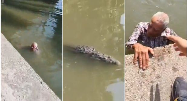 Un impactante video ha circulado en las redes sociales: un adulto mayor fue rescatado de ser atacado por un cocodrilo en Tamaulipas. El abuelito logró ser puesto a salvo cuando se acercaba el reptil de gran tamaño; así ocurrieron los hechos.