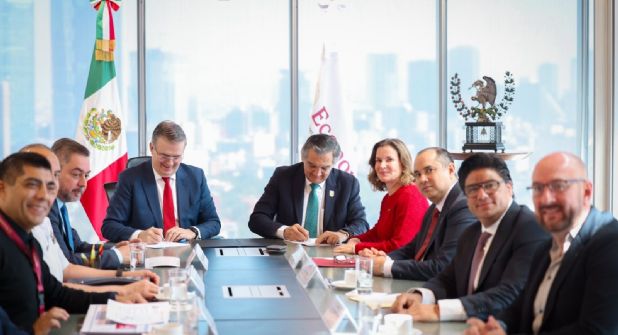 La secretaria de Economía estatal, Ninfa Cantú Deándar, informó que acompañó al gobernador Américo Villarreal Anaya en la formalización del acuerdo junto al titular de Economía federal, Marcelo Ebrard.