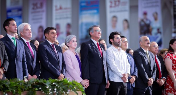 En el evento se contó con la presencia del gobernador de Oaxaca, Salomón Jara Cruz; en representación de la secretaria de Gobernación, Rosa Icela Rodríguez Velázquez asistió Carlos Vázquez García; además de representantes de las y los gobernadores de Coahuila, Nuevo León, Tlaxcala y Veracruz; la presidenta del Supremo Tribunal de Justicia, Tania Contreras López; el presidente de la Junta de Gobierno del Congreso Local, Humberto Prieto Herrera, y el presidente de la Mesa Directiva, Sergio Ojeda Castillo; senadoras y senadores, legisladores locales y federales; mandos de la Defensa Nacional, Marina y Guardia Nacional, presidentas y presidentes municipales, delegados federales, empresarios, sociedad civil y medios de comunicación.