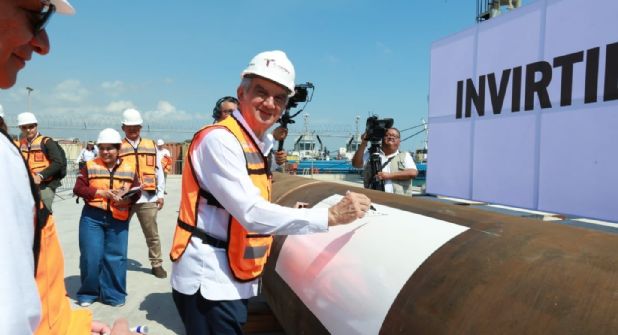 “Vamos a estar viniendo con ustedes a saludarlos, a solicitar su apoyo y a estar siempre con ustedes en el crecimiento del estado de Tamaulipas”, expresó durante la ceremonia realizada en el Puerto de Altamira, que representó un momento histórico para este proyecto, puesto en marcha en alianza entre Pemex y la empresa australiana Woodside Energy, con una inversión estimada en 10 mil millones de dólares.