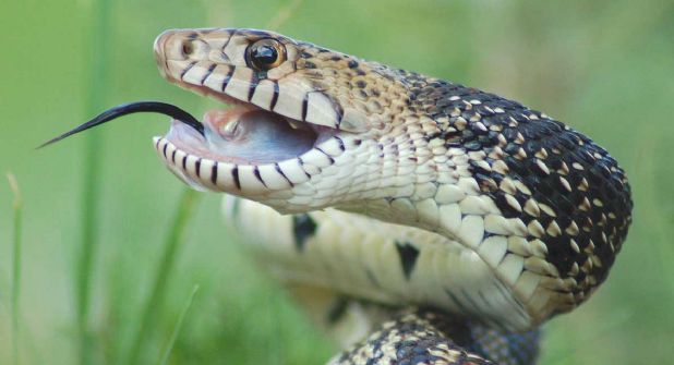 Serpiente toro . (Pituophis catenifer), pertenece a un género de serpientes inofensivas de la familia de los Colúbridos, estos reptiles reciben su nombre por el sonido que emiten, que suena como los bufidos y gruñidos de un toro.