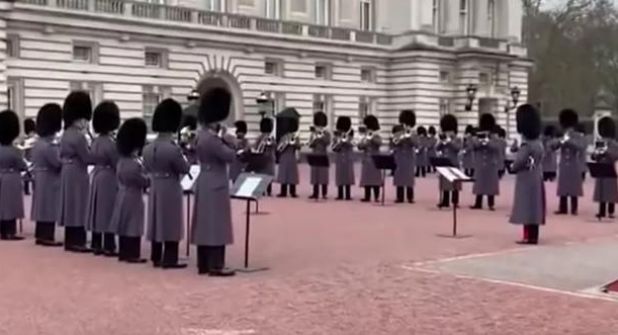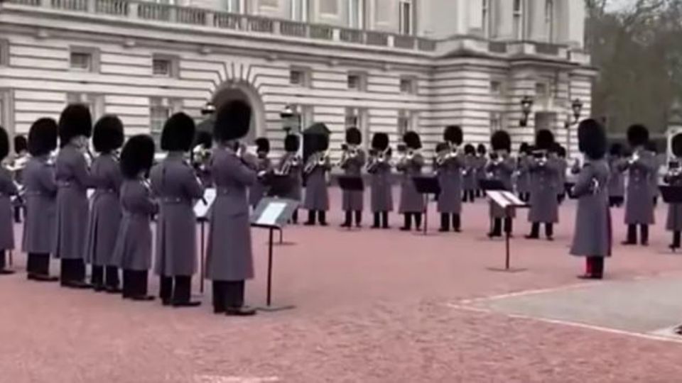 El momento fue registrado por uno de los cientos de turistas que estaban en las puertas de las sede real.