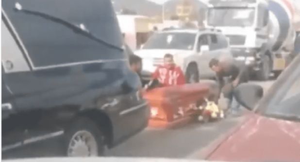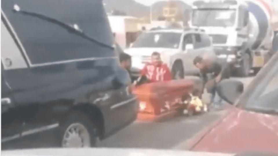 ¡Se le cae ataúd en plena calle!