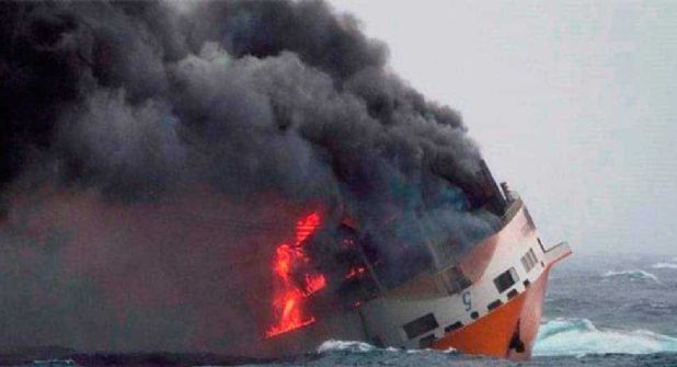 La semana pasada un barco de contenedores italiano, que transportaba unos 2 mil automóviles, se incendió y hundió en el Oceáno Atlántico, frente La Rochelle, en la costa de Francia.
