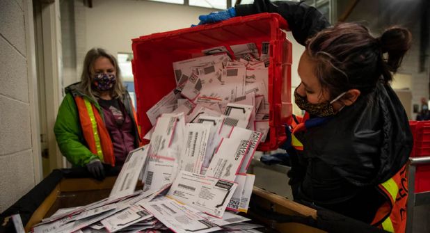 El conteo de las boletas postales toma más tiempo porque cada voto debe tener una firma que se corresponda con la de la tarjeta de registro del votante.