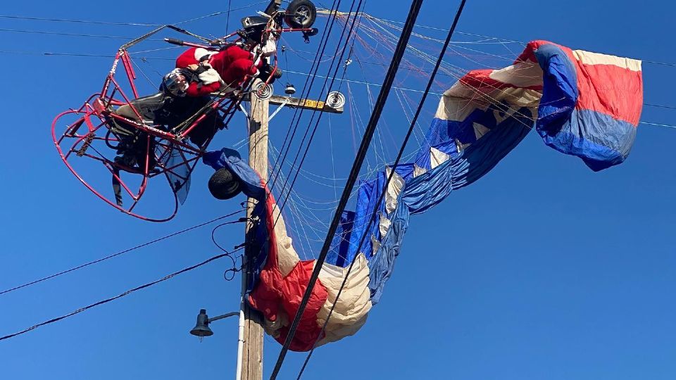 Bomberos de Sacramento respondió a un incidente de un paracaídas motorizado que se atascó en algunas líneas eléctricas en un poste de energía cerca de la 7th Ave. Lo que no esperaban ver es que era Papá Noel quien junto a su motorizado trineo se atascaron en algunas líneas eléctricas, el Santa Claus estaba volando un avión "hiperligero", según Sacramento Metro Fire.