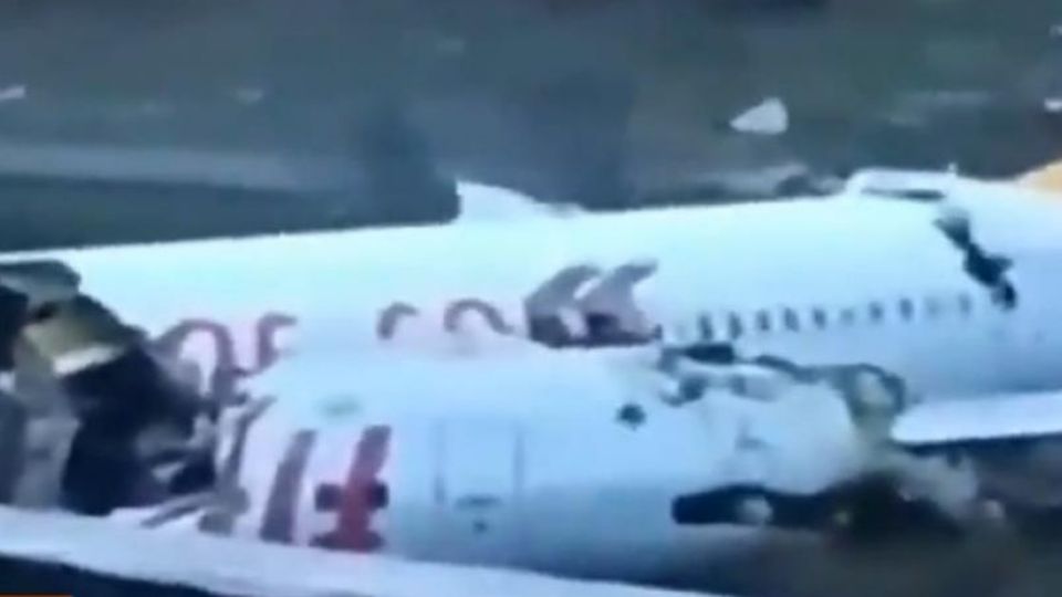 En uno de los hechos más impresionantes de lo que va del año, los pasajeros de un avión que fue partido en dos en Estambul, salieron de él por su propio pie.