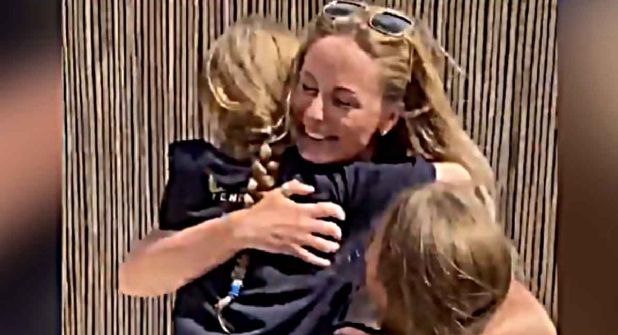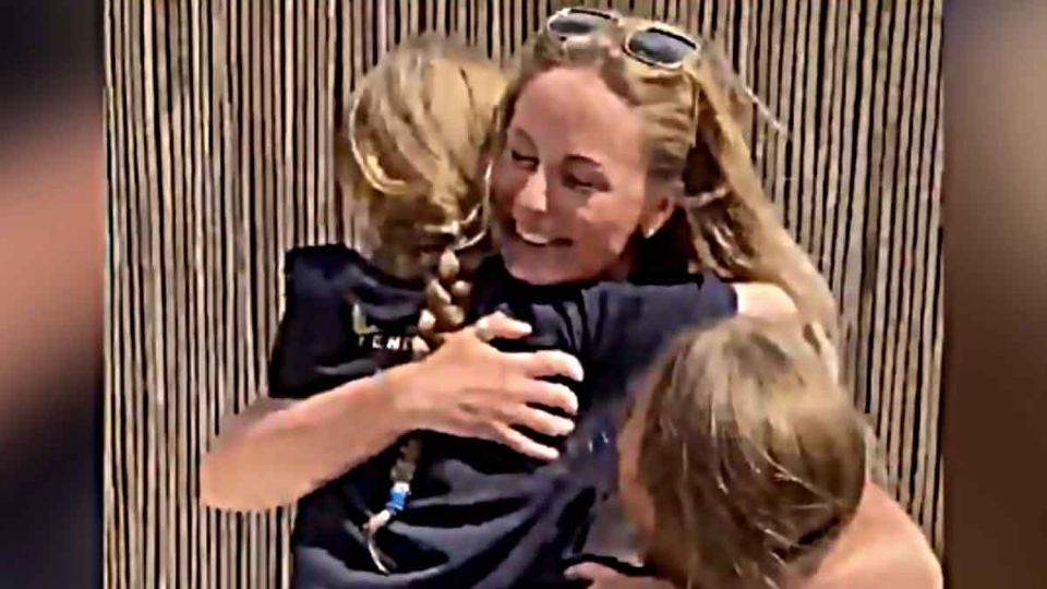 En un video que circula en las redes sociales se puede ver a Suzanne Vaughan escabulléndose detrás de sus dos hijas para sorprenderlas.