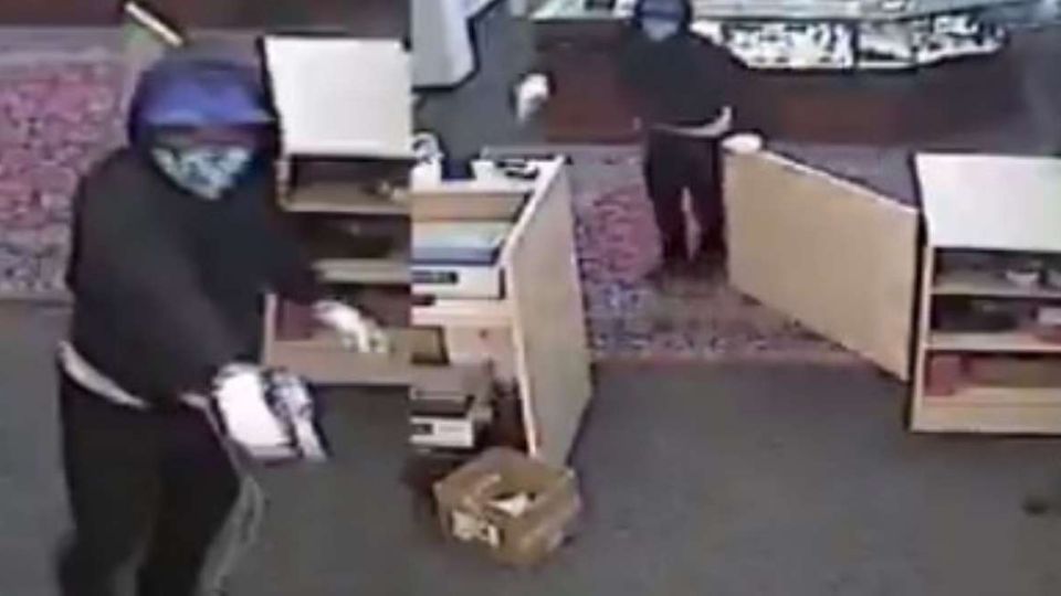La Policía divulgó los videos tomados por las cámaras de seguridad con la esperanza de que alguien pueda ayudarlos a identificar a los ladrones, quienes se hicieron pasar como clientes.