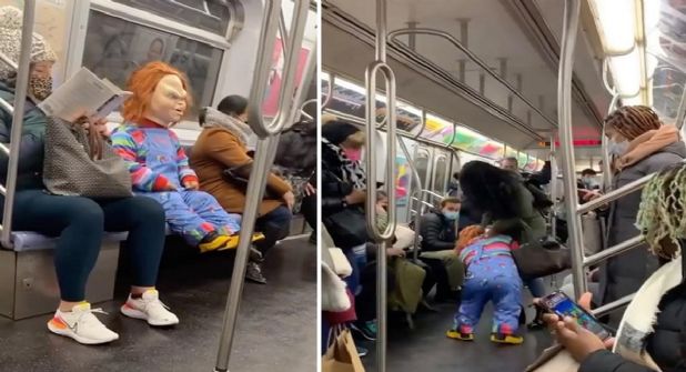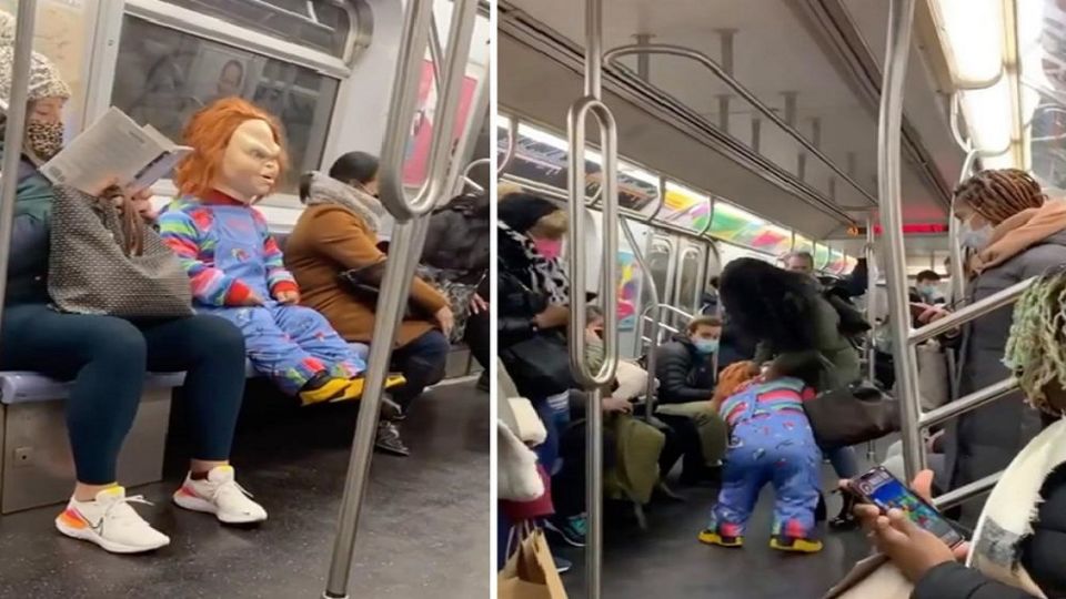 Un enano disfrazado del tenebroso Chucky, El Muñeco decidió salir a dar una lección (y un susto) a las personas que no usan cubrebocas durante la pandemia en lugares públicos como el metro de Nueva York; sorprendiendo presentes con el personaje como parte de un experimento social planeado para grabar la reacción de quienes le rodean.