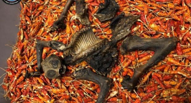 Uno de los decomisos fue el de los restos de un primate en peligro de extinción escondido dentro de un cargamento de chiles secos el pasado septiembre en Cincinnati se ubicó en el cuarto puesto de la lista. Los restos fueron hallados el pasado abril durante una inspección a varias bolsas grandes de chiles secos importados de Tailandia.