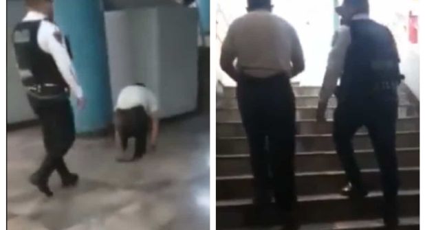 El “sorprendente milagro” fue captado por video y se volvió viral al circular en las redes sociales, el cual se grabó en una estación de Metro sin identificar, al lugar llegó un par de policías, quienes le piden al hombre, que pareciera no poder caminar, que salga del lugar.